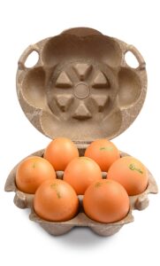 We proudly present the results of our successful collaboration with Rondeel and Novidon. Of course, Rondeel’s biodegradable egg cartons were already environmentally friendly. Still, by utilizing potato starch from waste streams of French fry and chip production, the packaging has become even more sustainable and 100% circular.