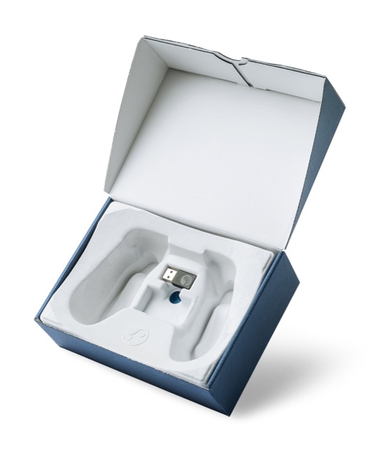 The controller is held firmly into place by a sleekly designed tray with debossed logo. Under the controller is a friction-fit USB accessory. Under the tray is plenty of room for an instruction manual and charging cable.