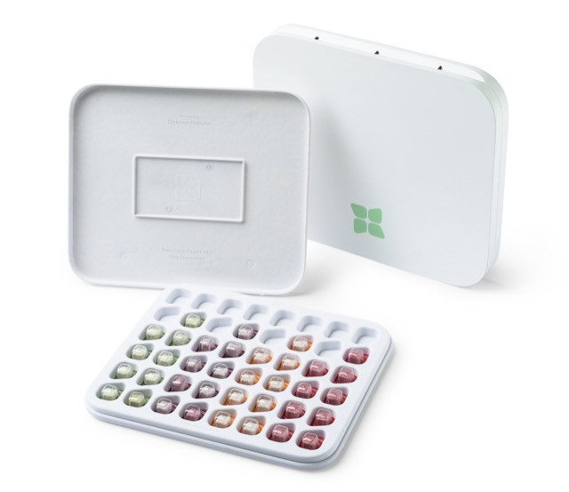 The replaceable tray has a separate PaperFoam lid and base and displays the blisters in neat rows.