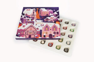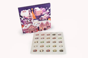 For the advent calendar, aesthetics were key. The PaperFoam® tray had to match the colorful, whimsical outer sleeve while keeping each microdrink perfectly in place. Precision-molded compartments prevent movement during transport, protect the cubes, and elevate the unboxing moment. All without plastic.