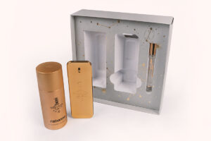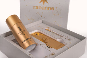 Rabanne gift sets typically contain multiple components, including a fragrance bottle, deodorant spray and additional accessories. These elements need to be held securely in place while remaining clearly visible when the box is opened. Traditional plastic inserts provide structure, but do not align with long-term sustainability goals.
